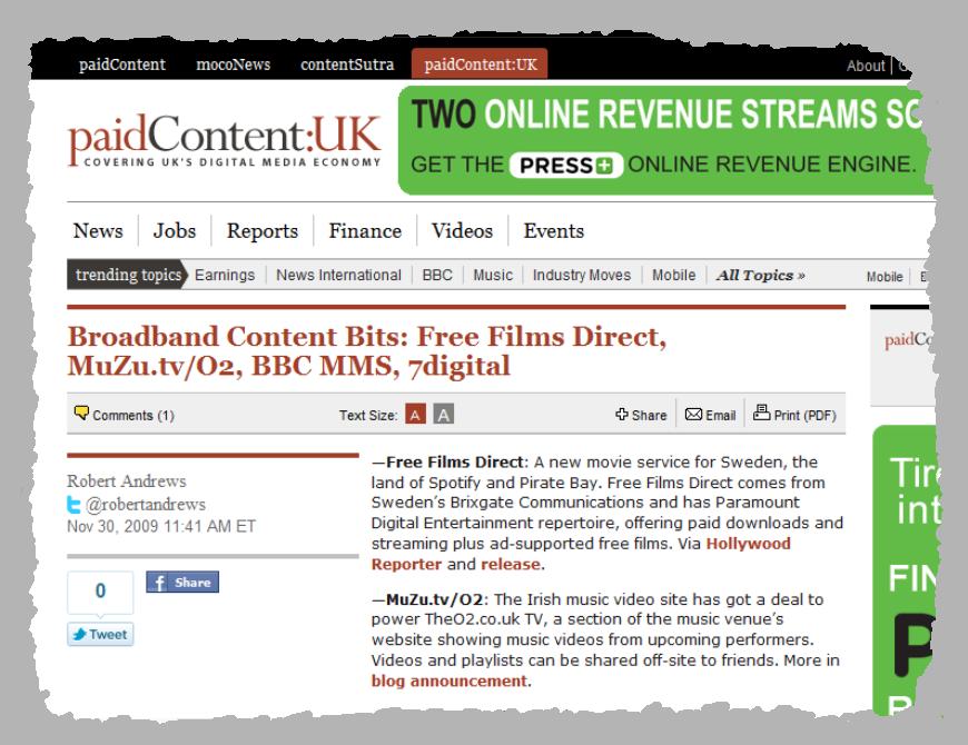 London – November 25th 2009 - Brixgate today announced that it has joined with Paramount Digital Entertainment to deliver a download and streaming movie service in Sweden.